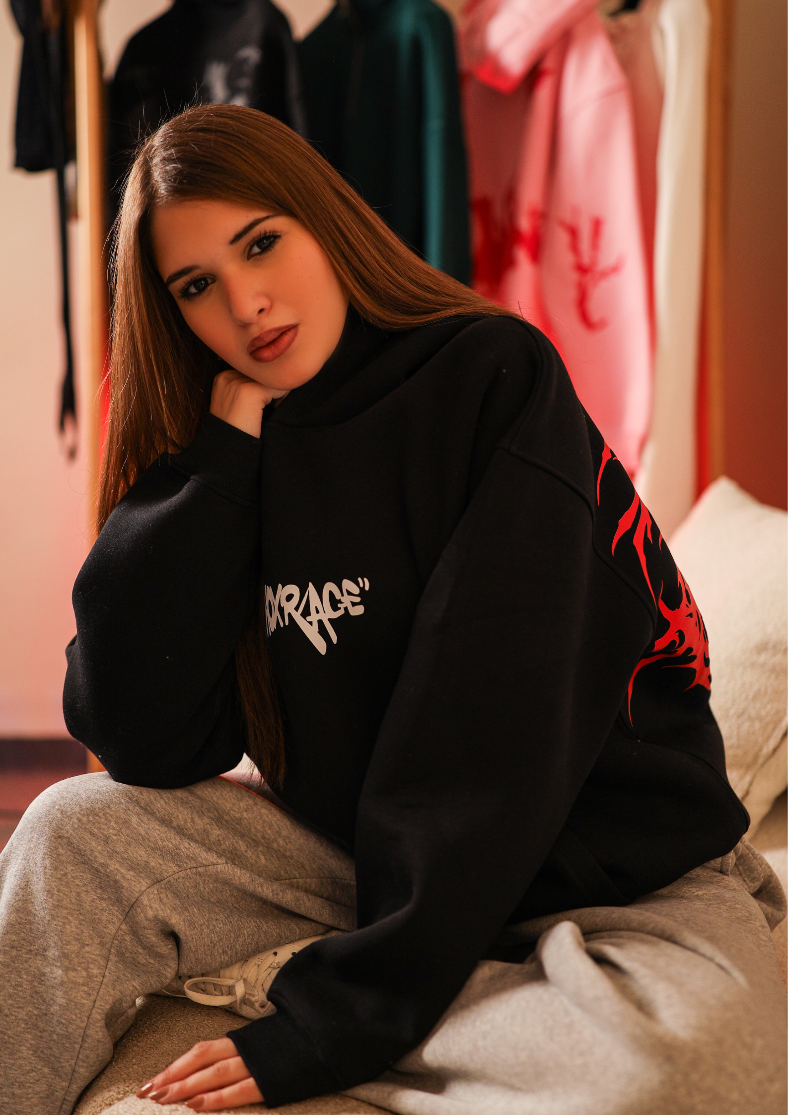 Black hoodie with a bold red wing graphic, symbolizing power, focus, and raw street energy. Premium fabric with a strong, structured fit.
